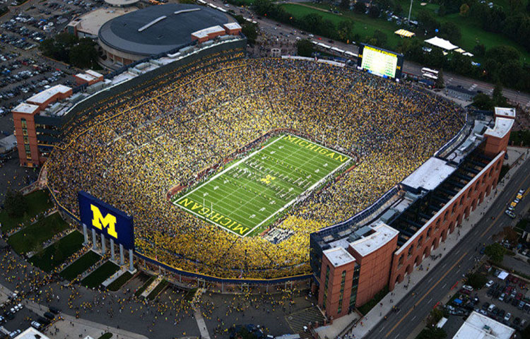 Michigan Stadium, poznat kao "The Big House" (Velika kuća), nalazi se u Ann Arboru i dom je Univerziteta Michigan. Sa kapacitetom od preko 107.000 mjesta, on je najveći stadion u zapadnoj hemisferi. Zanimljivo je da je stadion ukopan u zemlju, pa spolja ne djeluje toliko veliko, ali kada uđete unutra, redovi se spuštaju u nedogled.
